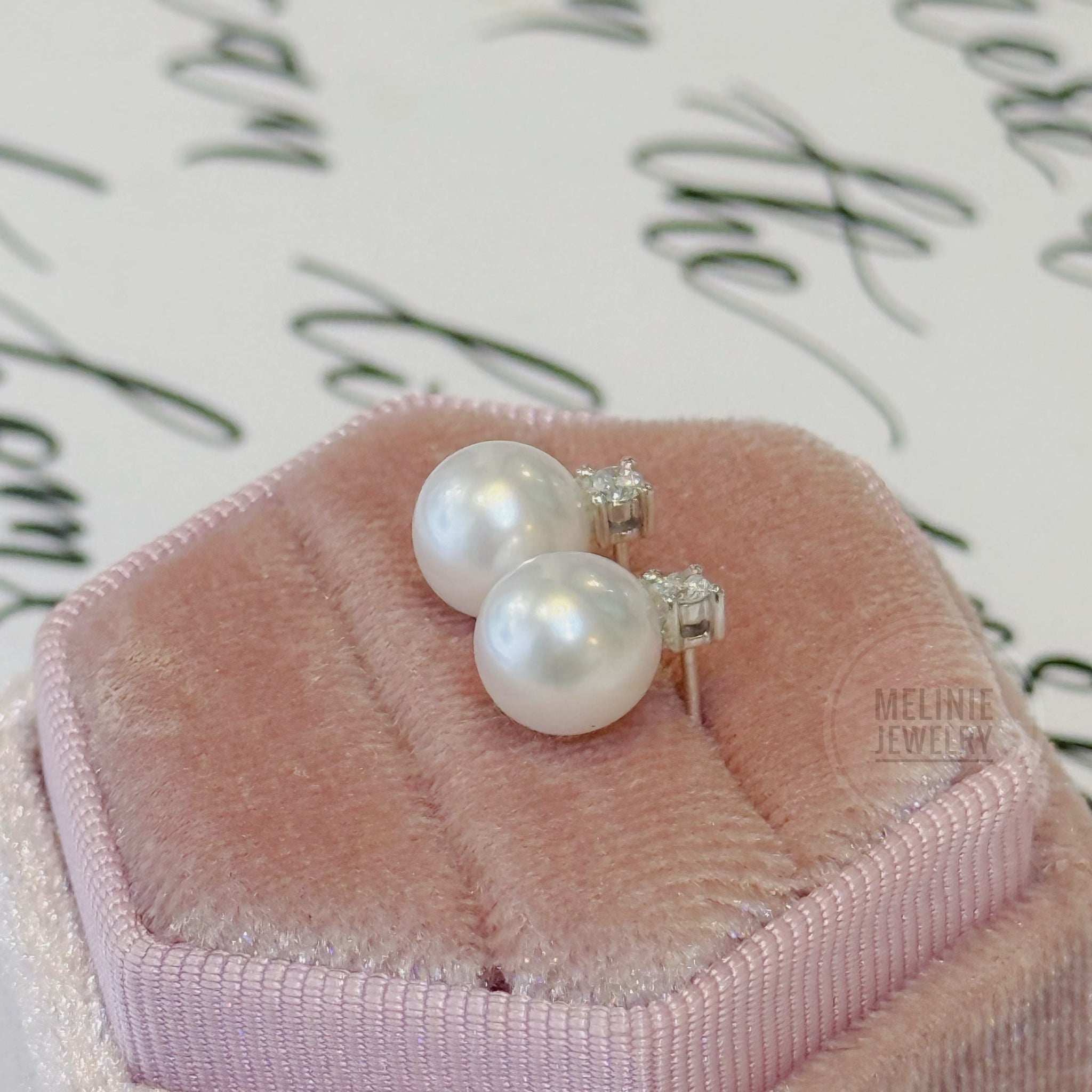 Mini Princess Diana Akoya Natural Diamond 18K Gold Earrings AS0199